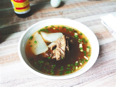 这家牛骨汤饭店的一位多年忠实顾客沙晓风说,这家店面虽简朴,但牛骨汤分量足、味道美、价格实惠,吸引着四面八方的食客,生意好的时候,一天能卖出上千碗牛骨汤。