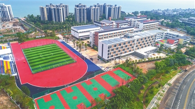 8月27日,俯瞰已竣工的海南华侨中学美丽沙分校,该校是海口市公办初中学校,今年秋季开学计划招8个班,收350名学生,即将迎来第一届初中新生报到。本报记者 张茂 实习生 陈婧 摄