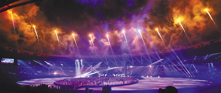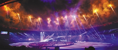 闭幕式表演精彩纷呈。在雨中,来自亚洲各地的音乐家、舞蹈家们载歌载舞,向世界展示“亚洲能量”。