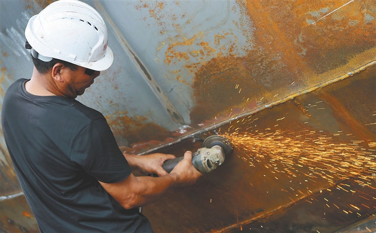 回忆起刚来临高时的感受,占国斌脱口而出:“太热!”焊接工作有时候在船舱里进行,上午的阳光照射,再加之船舱内密不透气,船舱里的温度时常高达80℃。这已是常人远不能接受的温度!