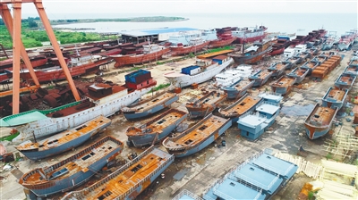 纵观整座造船基地,从无到有,从有到优,批量生产的60多艘大小不同、形状各异的钢制渔船整齐罗列。“过去造木船,而今造钢制渔船,临高造船市场前景广阔,一直吸引着外界的关注和订单,这是临高造船业发展最生动的体现。”临高县工业局局长张余森说。