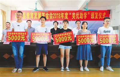 “4年前,我考上大学,在这里领到了助学金,如今我考上研究生,又一次来到这里,感谢定安教育发展基金会的支持,给了我很大的鼓励。”8月24日,定安县教育发展基金会举行2018年度“奖优助学”颁发仪式,奖励6名优秀学生和资助53名贫困学子。仪式上,今年考上北京大学经济学院研究生的曾倩怡说。