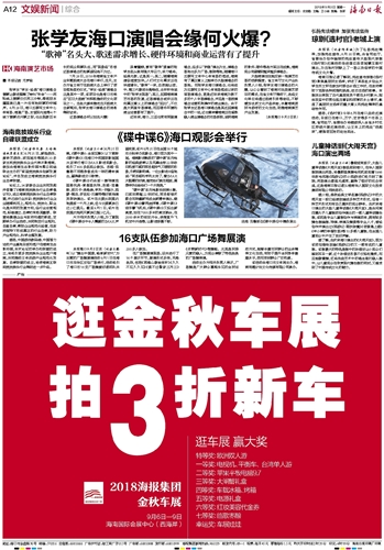 | 海南日报 文娱新闻综合 012 2018-09-031 2018年09月03日 星期一 |