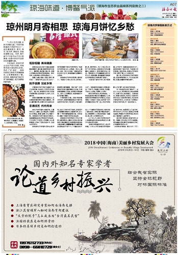 | 海南日报 琼海味道·博鳌气派(琼海市生态农业品牌系列宣传之二) 007 2018-09-031 2018年09月03日 星期一 |