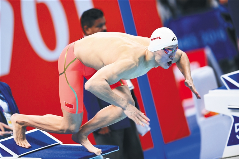 碧波泳池,中国与日本选手的较量贯穿6个比赛日。四年前中国泳军领先日本10枚金牌的优势不再存在,两队此次各取19金战成平手。中国队男子选手孙杨、徐嘉余表现出色,日本队也有“天才少女”池江璃花子横空出世。中国游泳队领队程浩认为,中日难分伯仲符合赛前预期。