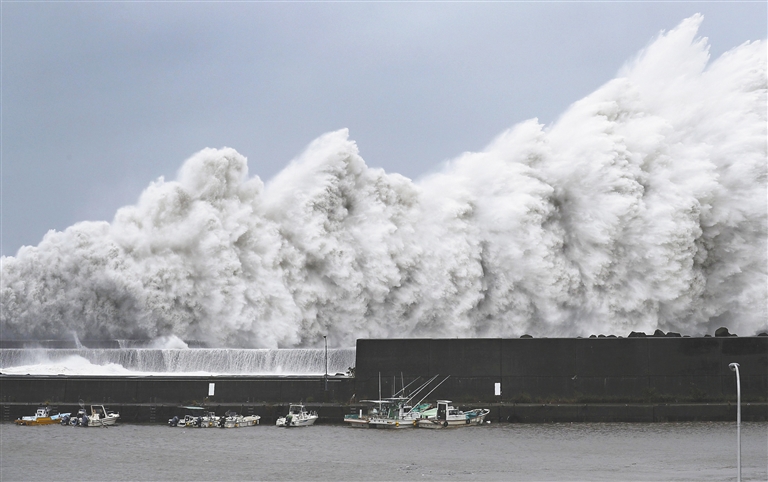 今年第21号台风“飞燕”4日中午在日本德岛县南部登陆,这是25年来登陆日本的最强台风。四国、近畿等地受其影响出现暴风、雷雨天气,部分海域可能出现大潮,日本气象部门呼吁居民严密警戒,确保安全。 新华社/路透