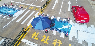 据了解,3D斑马线与原本的白色平行粗实线斑马线不同,其特点是色彩丰富和明艳,呈现3D立体效果(右图)。