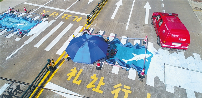 记者从海口有关部门了解到,3D立体斑马线鲜艳的色彩,逼真的立体画面感,更加突出斑马线的立体感,提醒司机礼让行人,减少交通事故的发生。本报记者 张茂 通讯员 王聘钊 摄