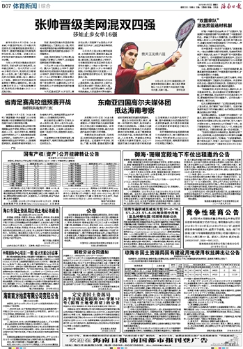 海南日报报业集团旗下媒体: 海南日报 |南国都市报 |南海网 |南岛晚报 |证券导报 |法制时报 |海南农垦报 返回首页
