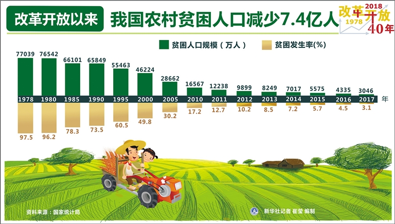 改革开放以来 我国农村贫困人口减少7.4亿人