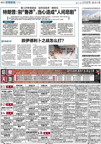 特朗普:别“鲁莽”,当心造成“人间悲剧”