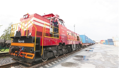 白俄罗斯首列搭载奶制品的集装箱班列4日从明斯克郊区的科利亚季奇货运站出发,前往中国重庆。据介绍,此次集装箱班列共有41个集装箱,其中20个集装箱装载白俄罗斯产脱脂奶粉。班列将于10天后抵达目的地,比海路运输节省约一个月时间。白俄罗斯计划不断提高对华出口奶制品集装箱发送量,逐渐提高到每月100个集装箱。新华社发