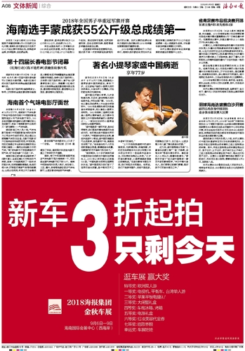 海南日报 文体新闻综合 008 2018-09-091 2018年09月09日 星期日