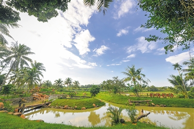 清晨,走进文昌潭牛镇大庙村,只见竹林婆娑,小径蜿蜒,游鱼潜底,鸟儿翔空,美丽的自然生态景观令人心旷神怡。