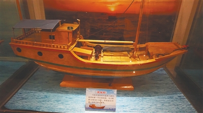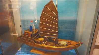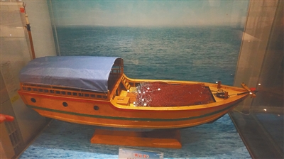 在陈列的渔船模型中,记者发现了一个特别小的一个渔船模型,这个模型扁平低矮,船上有竹棚。郑石喜介绍说,这便是疍家人最早使用的渔船,因为船头较平所以叫平头艇,当地也称“桥仔”。