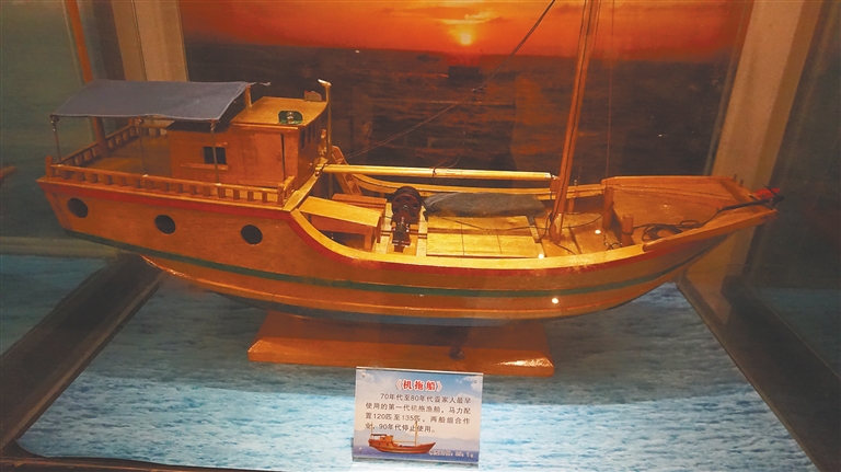 “旧时候渔船不仅是疍家人的生产工具,也是疍家人的家。随着时光的推移、生活方式的改变,渔船在漫长的耕海生涯中经历了从无帆到有帆,又从有帆到无帆的变化。”陈列馆馆长郑石喜介绍说,无帆时代主要是摇橹、划桨的小型渔船;有帆时代是指利用风力为动能的风帆渔船;后无帆时代是机器动力的渔船。