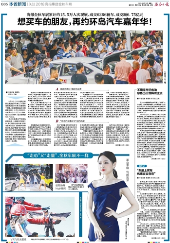 | 海南日报 本省新闻关注2018海报集团金秋车展 013 2018-09-101 2018年09月10日 星期一 |