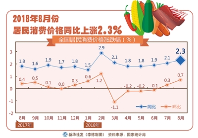 统计数据印证了居民的感受。8月份,全国居民消费价格同比上涨2.3%,涨幅比上月扩大0.2个百分点。从环比看,8月份,CPI环比上涨0.7%,涨幅比上月扩大0.4个百分点,食品价格上涨是环比涨幅扩大的主因。