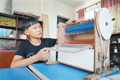 吴宏锋告诉海南日报记者:“对于一个十三岁的孩子,花生采摘器从构思、设计到制作都有很大难度,邱天铎能制作完成这个小发明很不容易。这与他平时细心观察生活、对科技创新发明充满热爱有很大关系。