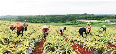 今年年初,东昌农场公司与天地东昌公司合作引进台湾菠萝新品种“绣球凤梨”。目前,天地东昌公司种植“绣球凤梨”4.1亩,共9430株。预计明年年初这批“绣球凤梨”将上市。