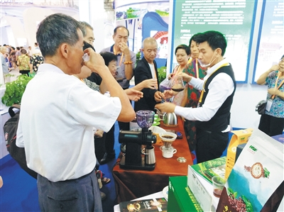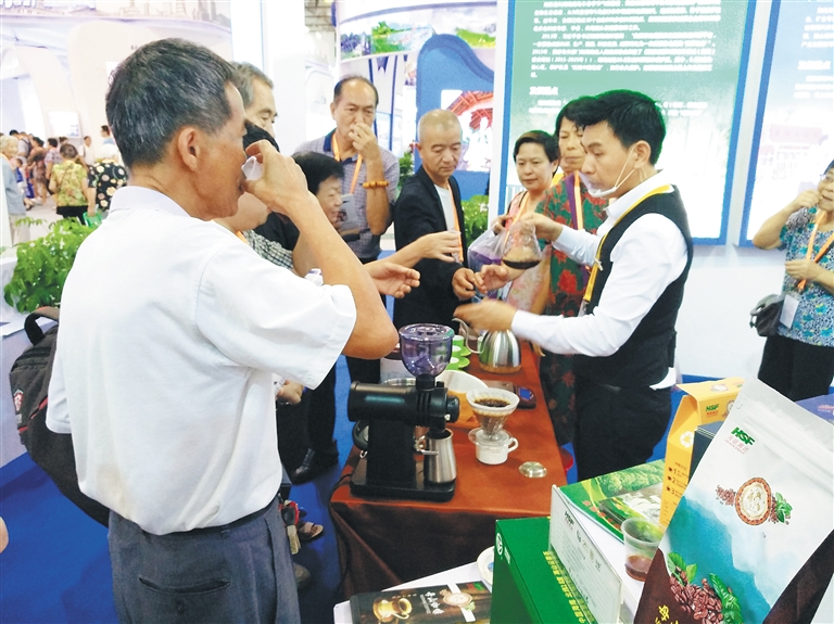 在投洽会上,作为海南馆的重要组成部分,海垦展区亮点纷呈,吸引了众多参展嘉宾和客商驻足。海垦展区介绍了海南农垦概况、海南农垦实施“八八战略”进展情况以及16种产品品牌打造情况。“白沙”牌茶叶、“飘仙”牌胡椒、“母山”牌咖啡等海垦名优特色农产品集中亮相。
