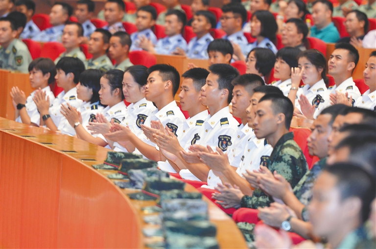 听了海口舰的先进事迹报告,熊心瑶明白了“有一种幸运,叫我们生活在中国”这句话背后的含义。“就像报告里说的,哪有什么岁月静好,不过是有人替你负重前行,海口舰官兵就是为我们负重前行的人。”她说,“感谢有这样一支强大的人民军队在保护我们,带给了我们满满的安全感,我们没有理由不去好好学习、努力奋斗,为建设更好的海南、建设更好的祖国贡献自己的力量。”