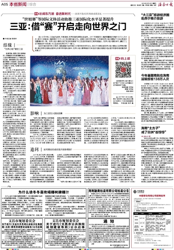 海南日报报业集团旗下媒体: 海南日报 |南国都市报 |南海网 |南岛晚报 |证券导报 |法制时报 |海南农垦报 设为首页