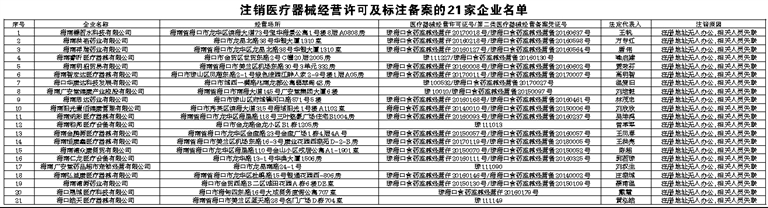 附件:注销医疗器械经营许可及标注备案的21家企业名单