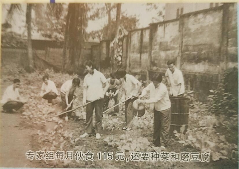 采访中,陈桂芳老人拿出当时他们在赤道几内亚扛锄头种菜的一张老照片,禁不住念叨起当时的一句顺口溜:“专家组专家组,每月115元,还要自己种菜磨豆腐”,说完,便开怀大笑起来。