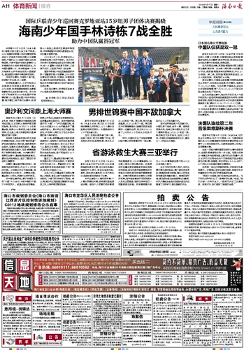 海南日报 体育新闻综合 011 2018-09-171 2018年09月17日 星期一