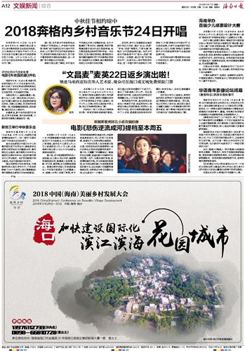 | 海南日报 文娱新闻综合 012 2018-09-171 2018年09月17日 星期一 |