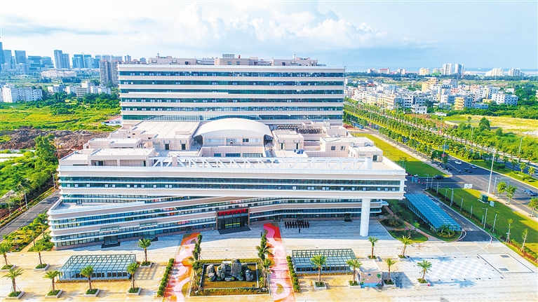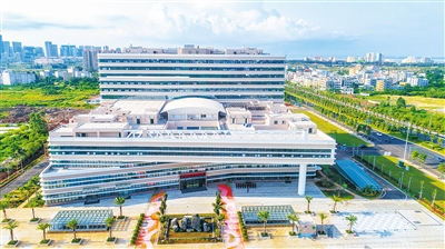 近日,在海口市西海岸长滨路,空中俯拍投入使用的海南省儿童医院项目雄姿。