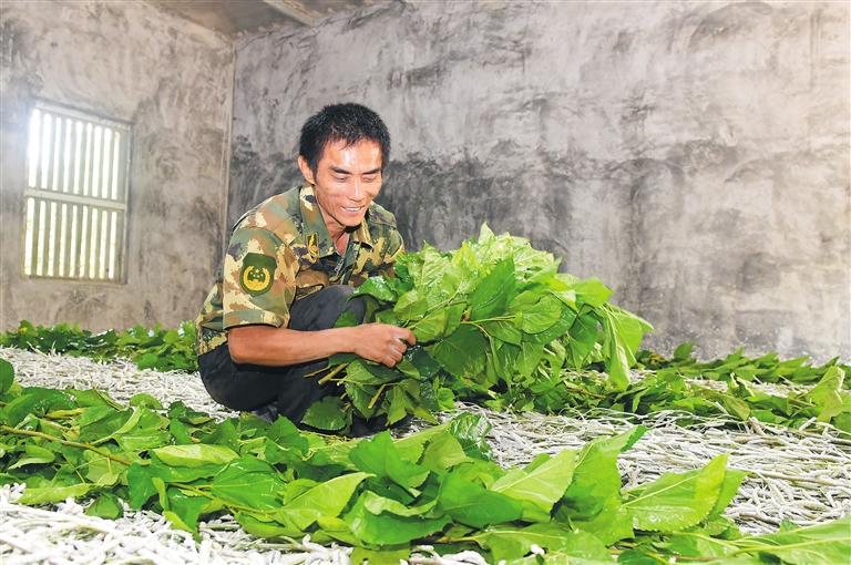 如今,洪富全在昌福村扶贫养蚕基地的带动下,发展种桑养蚕业,进一步巩固脱贫成果。