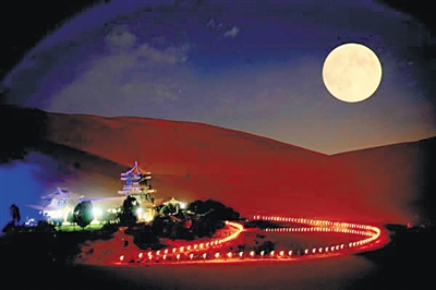 鸣沙山月牙泉位于甘肃省河西走廊西端的敦煌市。其中,月牙泉因弯曲如新月而得名,有“沙漠第一泉”之称。每到中秋之夜,天上之月、月牙泉和泉中之月三者相映成趣。据民间传说,月牙泉曾经是西王母瑶池举办蟠桃盛会的地方,敦煌当地的老百姓至今保留着月圆之夜“登高望月”的传统习俗。