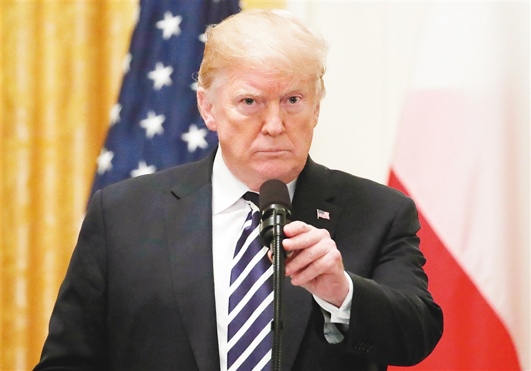 9月18日,美国总统特朗普在华盛顿白宫出席与波兰总统杜达(未见于画面)举行的联合记者会。