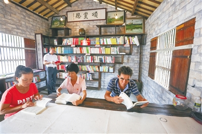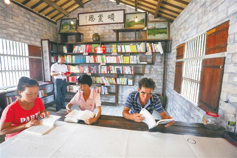9月17日,文昌市文教镇加美村的农家书屋,村民在认真看书。