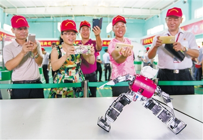图为参加启动仪式的嘉宾在展馆观看机器人表演。