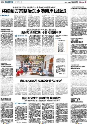 海南日报 本省新闻民生/社会 012 2018-09-201 2018年09月20日 星期四