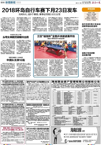 海南日报 体育新闻综合 014 2018-09-201 2018年09月20日 星期四
