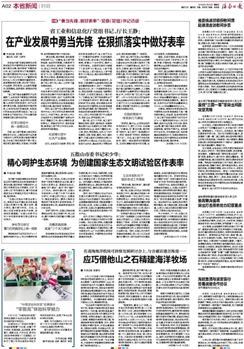 海南日报 本省新闻时政 002 2018-09-201 2018年09月20日 星期四