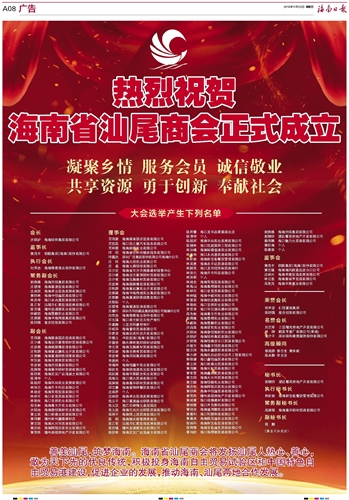 热烈祝贺海南省汕尾商会正式成立