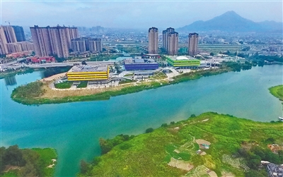 “这片水面叫玉湖,原来的老河道打此经过。为减轻‘裁弯取直’影响原有水生态系统,采取‘改道不改水’的方式,将原始河道水面最大限度保留,形成城市内湖,湖心水域面积超过700亩,不仅有效增加和提升了莆田城区水域面积和蓄洪能力,而且丰富了城市生态内涵。”吴健明说。