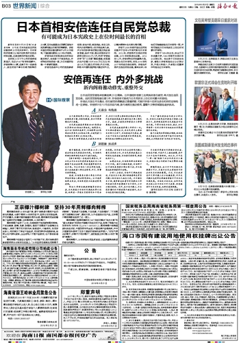 海南日报 世界新闻综合 011 2018-09-211 2018年09月21日 星期五