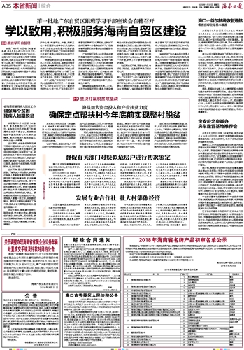 海南日报 本省新闻综合 005 2018-09-211 2018年09月21日 星期五