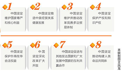 中国坚定维护国家尊严和核心利益。对于贸易战,中国不愿打、不怕打、必要时不得不打。中国谈判的大门一直敞开,但谈判必须以相互尊重、相互平等和言而有信、言行一致为前提,不能在关税大棒的威胁下进行,不能以牺牲中国发展权为代价。