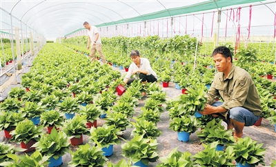 进入9月份,东方市板桥镇三间村2000多亩绿萝基地进入生产旺季,每天都有来自附近的大批农民到基地干活。“我这里固定工每个月工资3000元左右,临时工每天120元至150元不等。”东方上彩现代农业有限公司是东方绿萝最大生产企业的主要投资者,该公司副总闫谡介绍说,在每年9月至次年5月的绿萝生产旺季,公司每月给来打工的农民发工资80多万元,从2013年10月首个基地400亩投产以来,累计给附近农民发工资4000多万元。