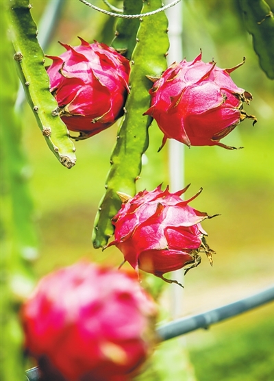 火龙果营养丰富,含植物性白蛋白及花青素,维生素和水溶性膳食纤维含量丰富。东方气候适宜火龙果种植,产出的红心火龙果个头大味道甜,深受消费者喜爱,全市种植火龙果3.8万亩。
