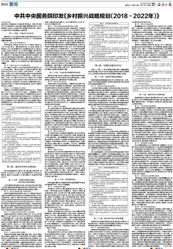 中共中央国务院印发 《乡村振兴战略规划(2018-2022年)》