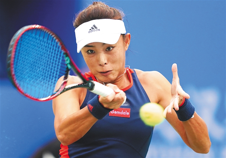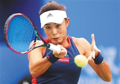 27日,在WTA武汉网球公开赛单打四分之一决赛中,王蔷以2:0战胜普伊格,晋级四强。新华社发
