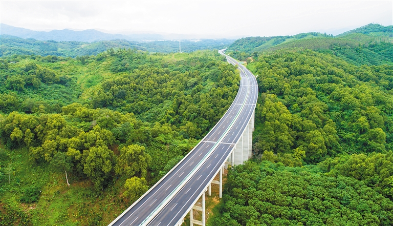 6跨昌化江,8跨南圣河,途经五指山、鹦哥岭等多个自然保护区,是我省迄今为止施工区域地形最复杂、生态最敏感,建设难度最大的一条高速公路